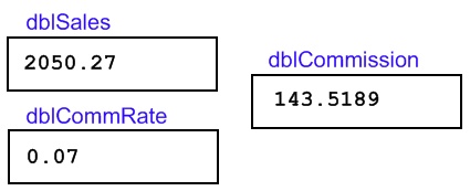 dblSales and dblCommRate. The third statement calculates the value of